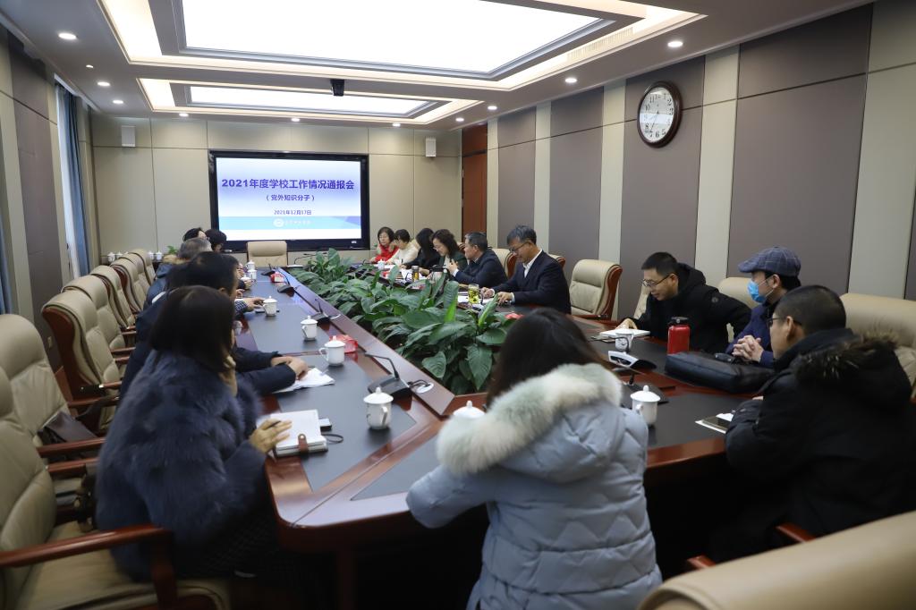 金桩校长从学科建设及教学科研、人才队伍建设、学生教育培养、治理体系和治理能力现代化、疫情防控、“十四五”教育事业发展规划、新校区建设、民生福祉八个方面,通报了学校2021年各项事业发展情况及取得的主要成绩,并对多年来党外知识分子在学校建设、发展中所做的贡献给予充分肯定。
