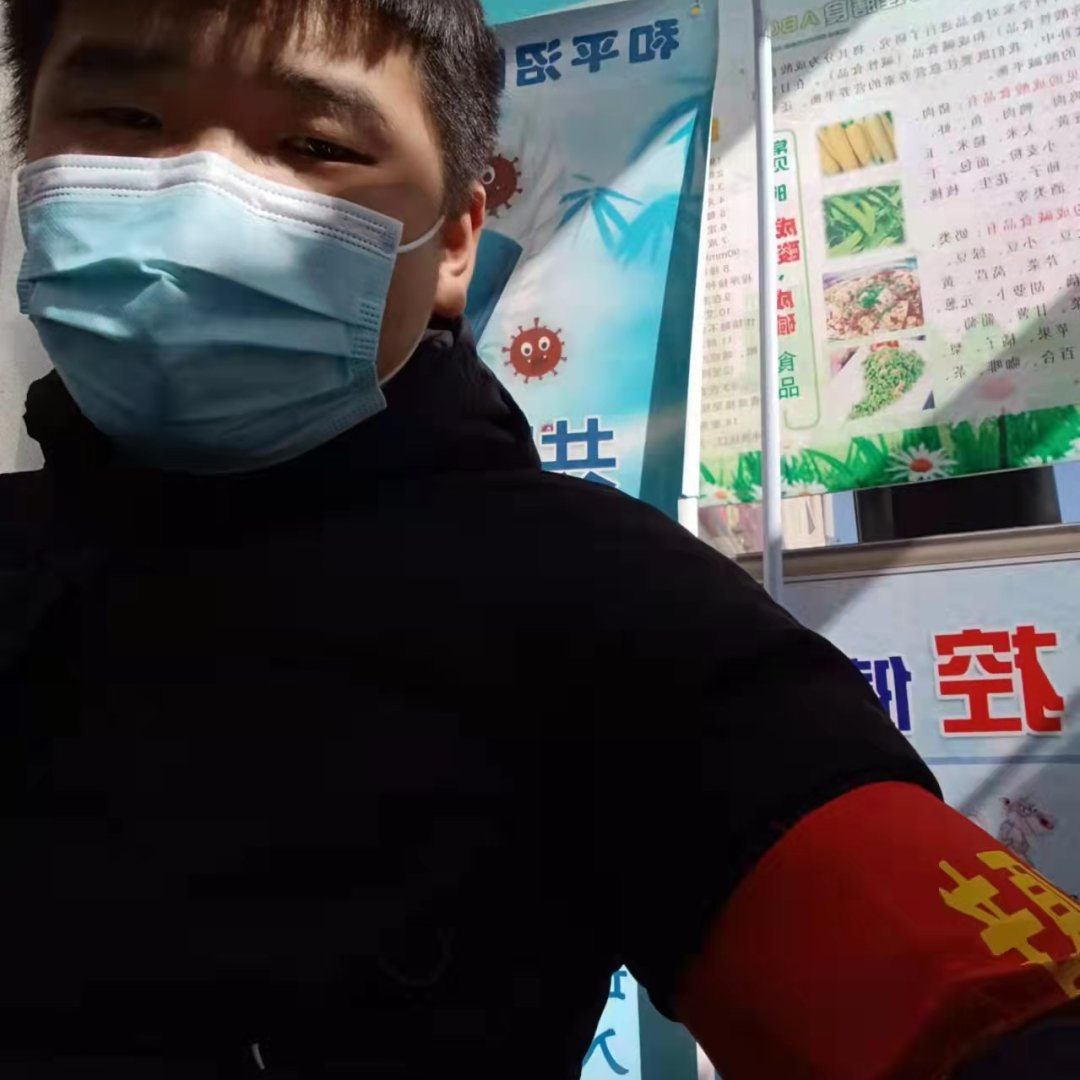 信息科学与技术学院2018级电子班李洪伟,在呼和浩特市东影北街社区负责协助核酸检测以及向小区居民宣传疫情期间防护知识等工作。