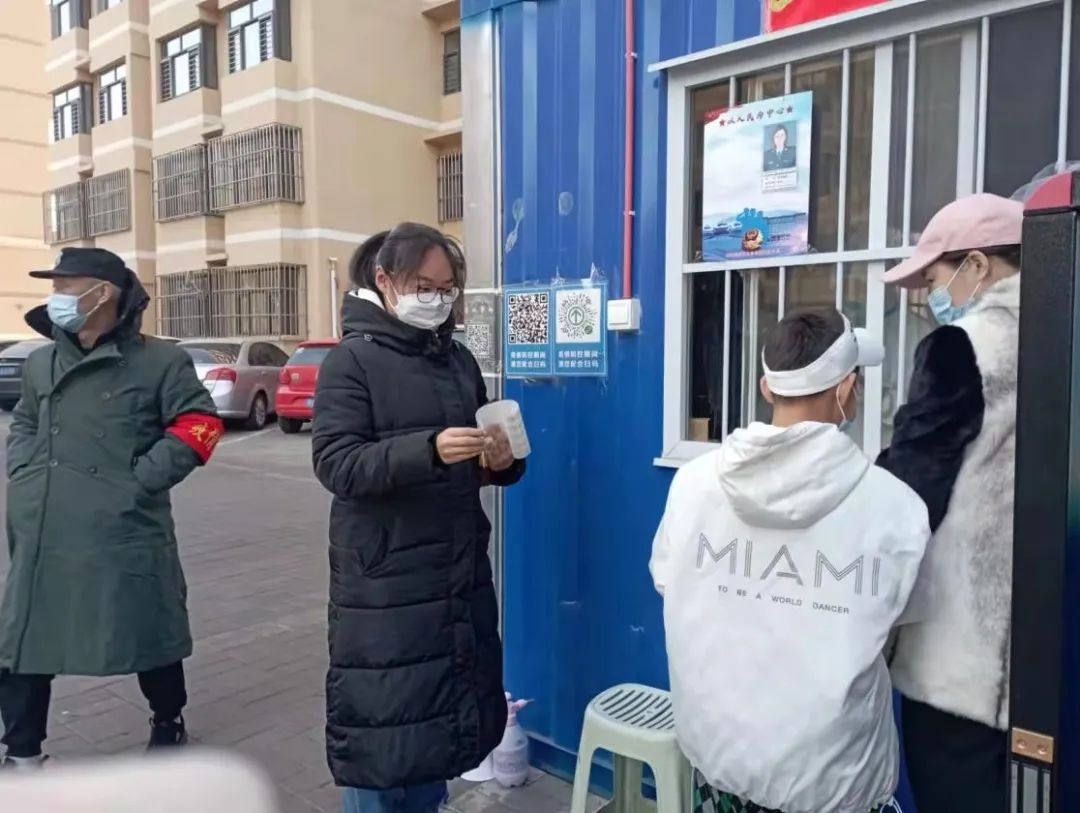 数学科学学院2019级信息与计算科学一班麻心茹协助社区进行核酸检测。