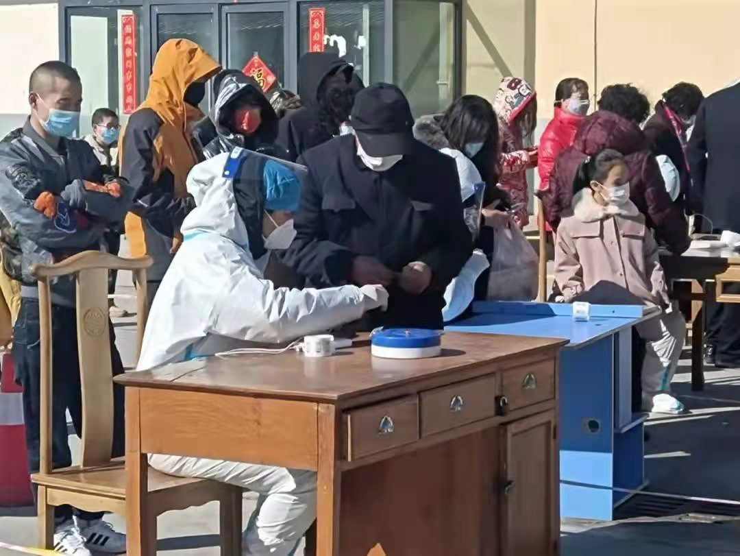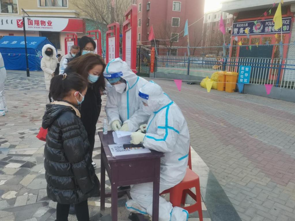 数学科学学院2019级数学与应用数学一班董彦林在社区进行核酸检测登记工作。
