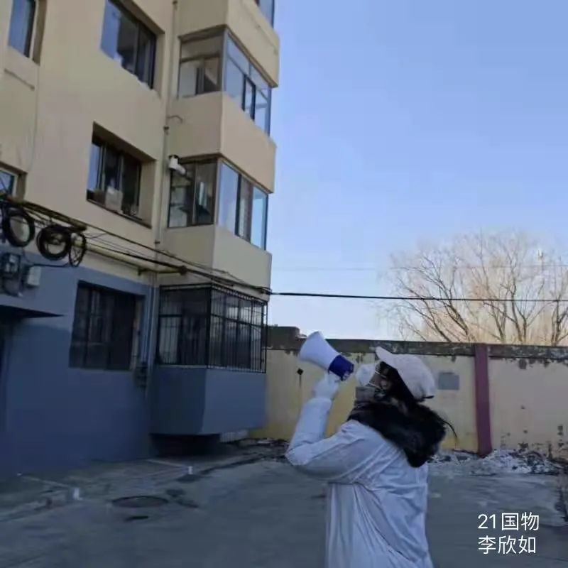 来自物理院21物理ISEC班的乔娜于疫情当前立即行动起来,在呼和在防控小组中主要负责监督做核酸成员佩戴口罩,顺序排队,在疫情中奉献力量!