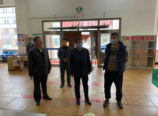 在南院食堂大厅,双山查看了就餐环境的卫生、消杀记录、隔离挡板质量等疫情防控情况,与物业管理人员就食堂消杀问题进行了详细交谈,询问了学生食堂从业人员疫苗接种、假期行程等情况。他强调,学生返校前务必与教务处协商好学生错峰上下课时间,制定符合实际的学生食堂错时错峰就餐方案,同时做好学生食堂进出口管理,在学生就餐期间及时进行相应的引导疏散。