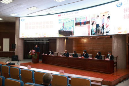 会上,金桩校长致辞,他深情回顾了学校育人的发展历程,介绍了学校整体发展情况,对区内外广大校友所取得的优秀业绩表示了祝贺,对校友不忘初心、反哺母校的行动给予了高度评价,特别是对此次校友企业内蒙古鸿雁慈善公益协会的捐资助学促就助创举动高度点赞。同时金校长强调了书记校长访企拓岗促就业专项行动的重大意义,对大学生就业创业工作中给予支持的包头市委市政府、社会各界表示了感谢并为进一步做好创业就业、资助及校友联络工作提出了明确要求。