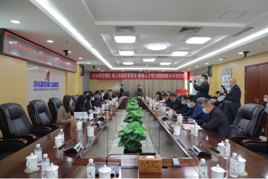 稀土高新区党工委副书记、管委会主任邬军军,高新区党工委、管委会领导董文清、丁大为、赵铮及相关部门负责人出席,我校校长金桩、党委委员副校长王有亮、党委委员副校长格根哈斯及相关部门负责人出席签约仪式。