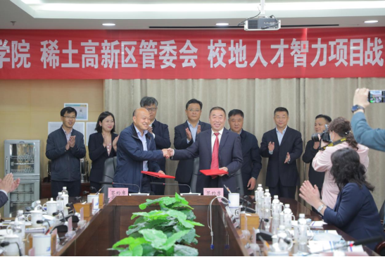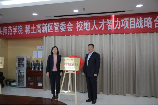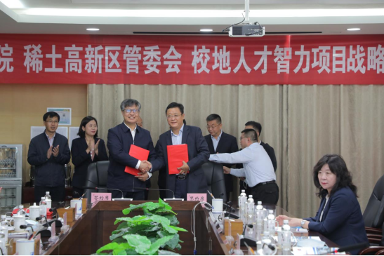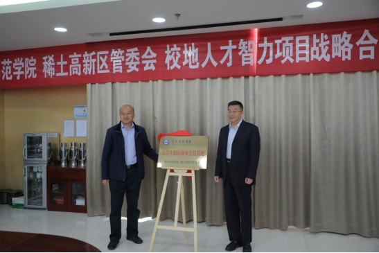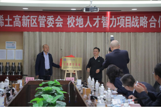 5月18日,我校与稀土高新区管委会举行校地人才智力项目战略合作签约及挂牌仪式。