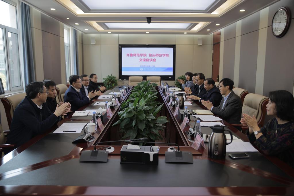黄海代表学校对齐鲁师范学院一行到来表示欢迎。他说,两校同为坚守教师教育底色、服务基础教育,同为坚持“师范性、地方性、应用型”办学定位的地方院校,有着非常相似的发展历程。齐鲁师范学院在专业建设、内涵发展、国际化办学、服务基础教育和地方经济社会发展等方面有许多宝贵的经验值得我们交流和学习。他介绍了我校在人才培养、师范专业认证,学位点建设、办学层次、服务地方等方面的情况,希望加强与齐鲁师范学院的交流与沟通,分享经验,相互学习,共同探索高等教育发展的新方法、新形式。