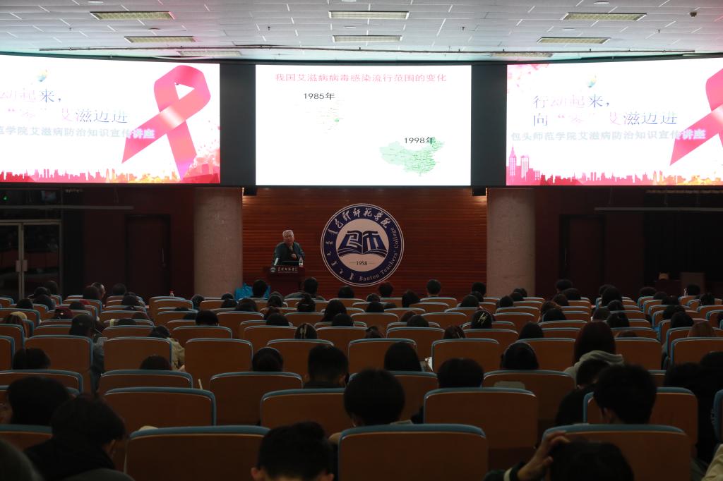 在世界艾滋病日即将到临之即,校医院特别邀请包头市艾滋病协会会长、包头市疾控中心主任高建权来我校集中开展艾滋病宣传教育,旨在增强我校学生对艾滋病危害性的认识,了解艾滋病的传播途径、发病机理和症状,以更好地遏制艾滋病的传播和蔓延,提高防范意识以及自觉抵御艾滋病各种传播渠道的能力。