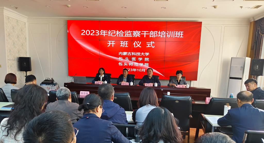 为贯彻落实《全国干部教育培训规划(2023-2027年)》,结合教育整顿工作要求,进一步提升我校专兼职纪检监察干部履职能力,10月18日,我校联合内蒙古科技大学、包头医学院共同举办了2023年高校纪检监察干部培训班。校党委委员、纪委书记、监察专员、二级高级监察官刘醒君带队参加,校纪委委员、各基层党总支纪检委员、纪委办共22名干部参加培训。