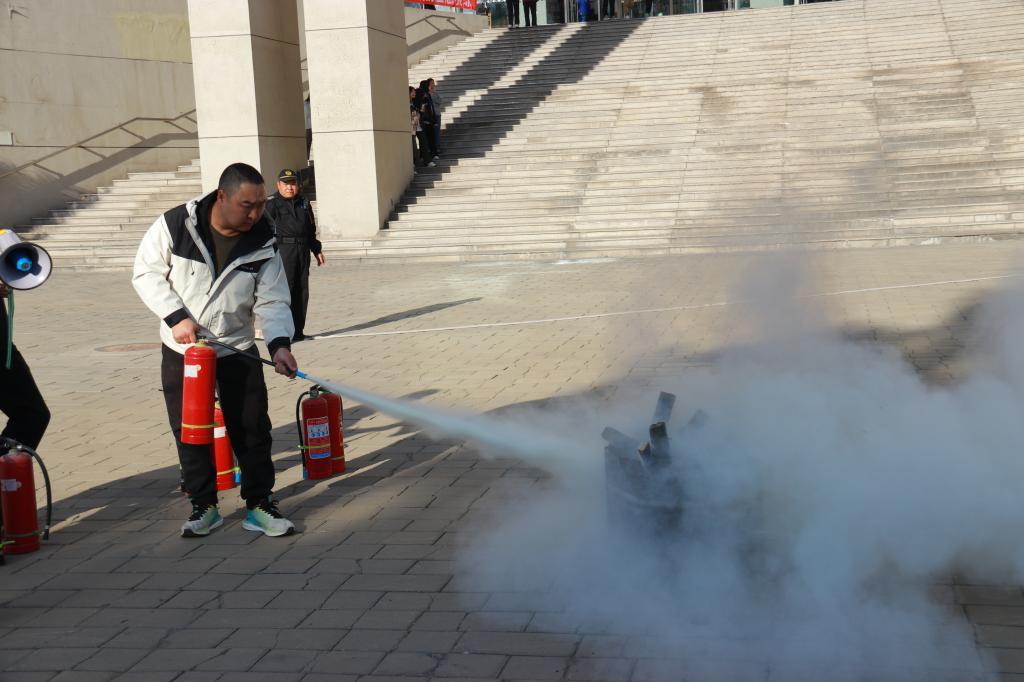 随后,演练人员来到图书馆南广场,消防科高峰老师强调图书馆作为重点防火单位,要做到警钟长鸣,希望全体师生要紧绷“安全”这根弦,切实做到人走断电,熟练掌握突发安全事件的应急处理,学会正确及时安全撤离,牢固树立安全意识。高老师重点讲解演示了灭火器和消防水带的使用方法、在场师生进行了应急操作演练。