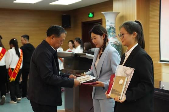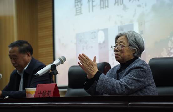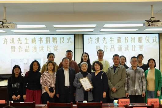 活动分两个阶段,首先举行许淇先生藏书捐赠仪式,由图书馆胡琮禹馆长主持。许淇先生夫人计晓荣女士致辞,她用简单朴实的语言回顾了许淇先生的文学成就及生平过往,并寄语我校青年学子,多读书、读好书,以书为伴,以书为友,修身养志,增长才干。计晓荣女士向我校图书馆捐赠许淇先生著作及藏书共计969册。郝素珍副馆长向计晓荣女士颁发捐赠证书。
