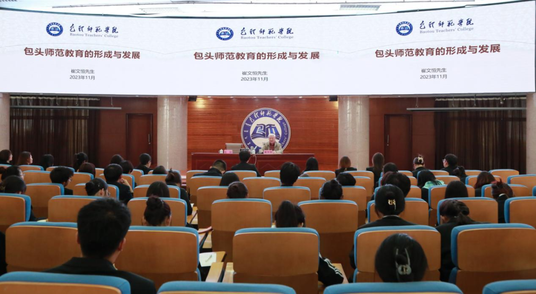 11月2日下午,我校“十七期青年马克思主义者培养工程学生骨干培训班”校史专题讲座在博学楼学术报告厅举办。我校退休老教授崔文恒先生为同学们带来“包头师范教育的形成与发展”专题讲座。