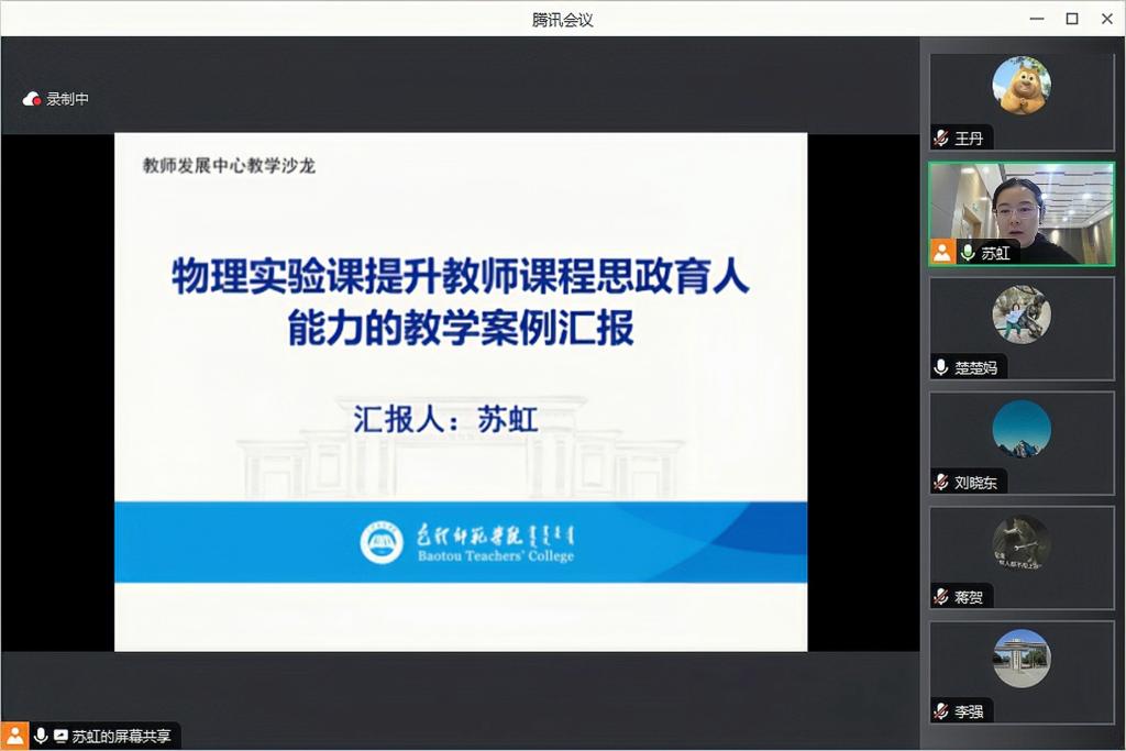 系列成果汇报展示第三期,以“物理实验课提升教师课程思政育人能力的教学案例汇报”为主题线上开展教学沙龙,本次汇报展示由我校物理科学与技术学院在读博士苏虹分享教学心得体会。苏虹老师从课题的研究缘起、研究方法和步骤、解决策略、阶段成果等方面进行了系统地讲解,并结合自身一线教学实践经验与教学改革探索,引出她的教学研究成果“1+3+3+X”工作模式,即以ETA物理认知模型为指导设计物理实验课程,改进物理实验评价方式,进而促进教师思政育人能力的发展。