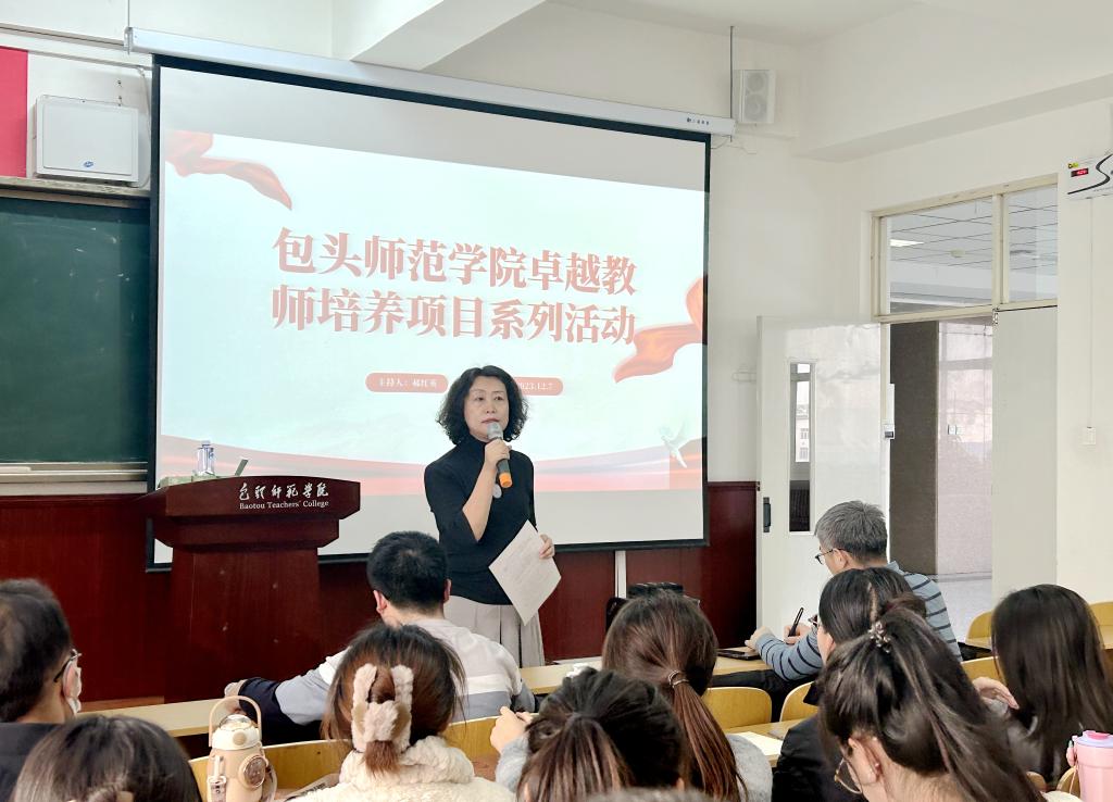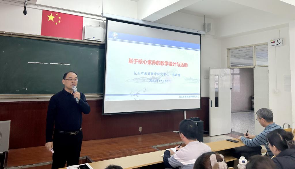 12月7日下午,教师教育学院在博学楼400教室举办了“卓越教师培养项目系列活动(五)”。讲座由教师教育学院郝红英院长主持,包头市教育教学研究中心物理教研员兼初中部主任祁敬原老师作为主讲嘉宾,以“基于核心素养的课程教学设计与活动”为题进行了精彩的讲述。包头师范学院“卓越教师班”2020级和2021级全体学生、教师教育学院全体教师参加了讲座。