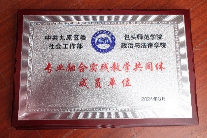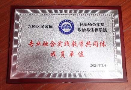 为贯彻落实党中央关于加强基层社会治理战略部署的具体要求和推进九原区社会治理体系和治理能力现代化之路。我校政治与法律学院作为驻区高等教育的重要阵地,尝试推进专业融合发展来深化校地合作,充分发挥高校服务地方职能。2023年10月始,由包头师范学院牵头,经过与九原区半年的接洽、沟通与协商,中共九原区委组织部、社会工作部、政法委、九原区民政局、司法局五家单位与我校政治与法律学院达成合作共识,成立“九原区社会治理协同创新中心”并落地政治与法律学院,共同建设九原区社会治理协同创新中心。同时建立法学、社会工作、政治学与行政学融合发展的“专业融合实践教学共同体”,推动政治与法律学院实践教学创新与社会服务的深度融合,提升专业人才培养质量和社会服务能力。