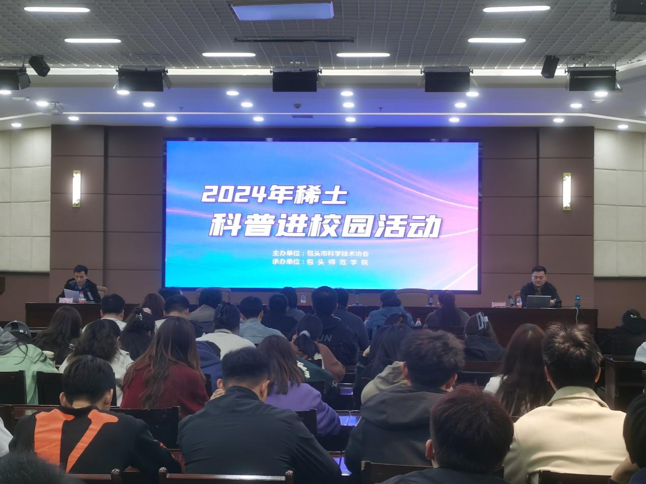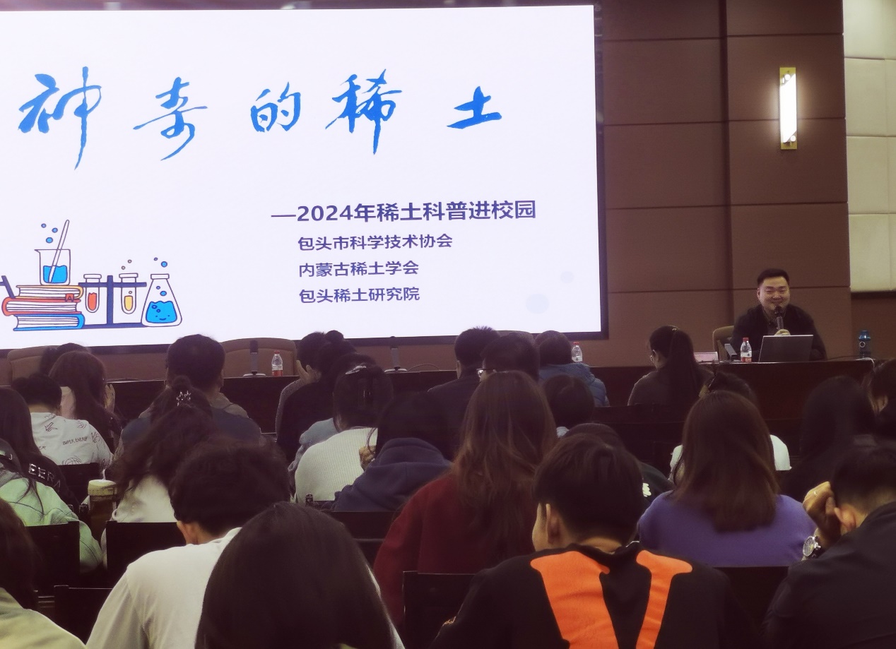 为深入贯彻落实习近平总书记对内蒙古的重要指示精神,助力建设“两个稀土基地”,打造“世界绿色硅都”,深化科普活动内涵,于3月29日下午在图书馆报告厅我校承办稀土科普进校园活动,并邀请包头市稀土研究院居立东工程师作了题为《神奇的稀土》专题讲座。讲座由科技处副处长郭凯敏主持,市科协和科技处相关工作人员以及物理科学与技术学院和化学学院的师生代表150余人参加。
