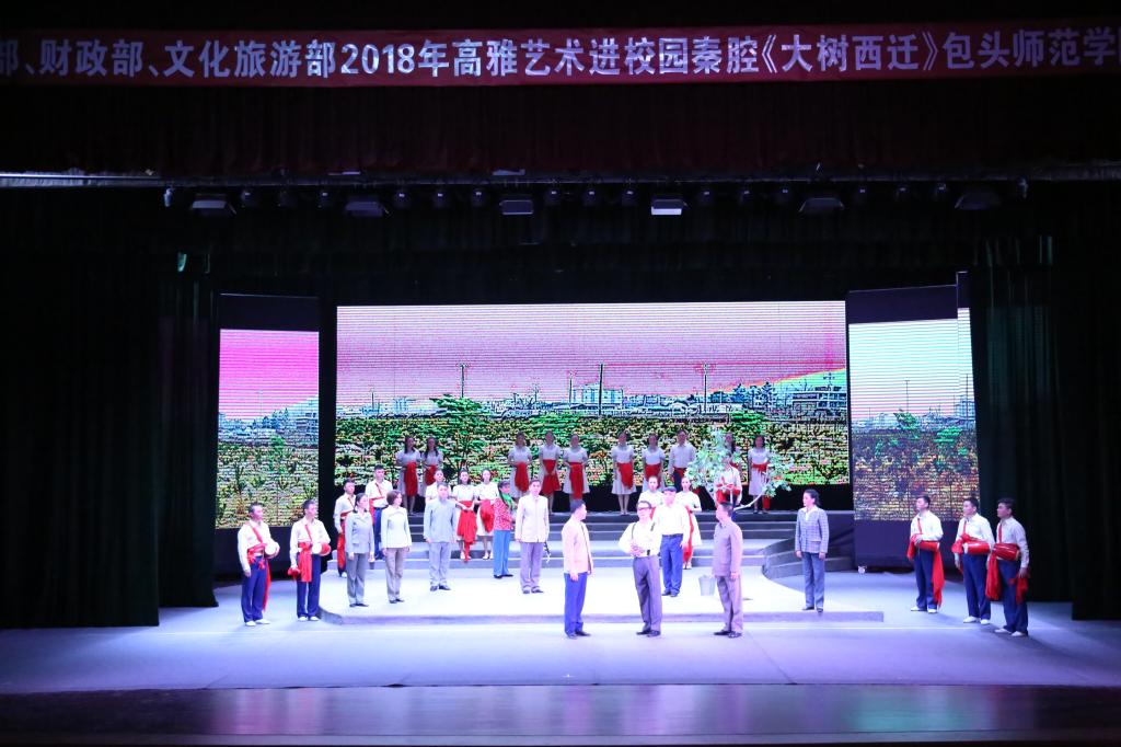 5月13日晚,由内蒙古自治区教育厅主办、包头师范学院团委承办的2018年高雅艺术进校园活动——大型秦腔现代剧《大树西迁》包头师范学院专场演出在我校会堂精彩上演,我校800余名师生观看了演出。