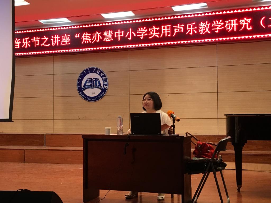上午,我校音乐学院声乐副教授焦亦慧作讲座,紧扣“高师院校音乐专业声乐教学怎样与中小学音乐教学实践紧密结合”主题,深入分析了适合不同年龄段中小学生的教学方式、变声期教学方法及“声、情、字、舞、演”等具体问题。