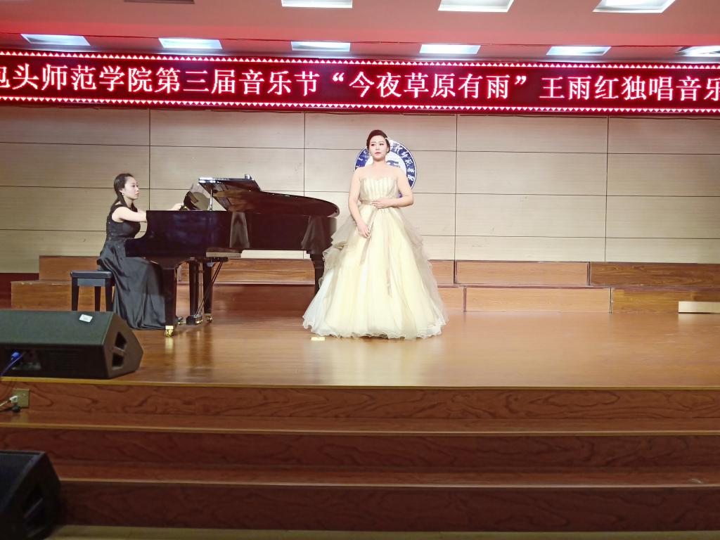 晚上,“今夜草原有雨”王雨红独唱音乐会在音乐学院博艺厅举行。音乐会上,指导教师焦亦慧为大家讲解了每一首作品的创作背景和演唱风格。本场音乐会也是自我校2016年首届音乐节举办以来的首场声乐作品讲析音乐会。