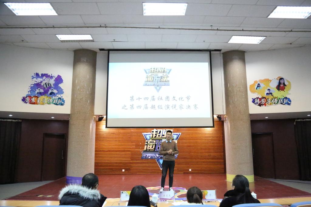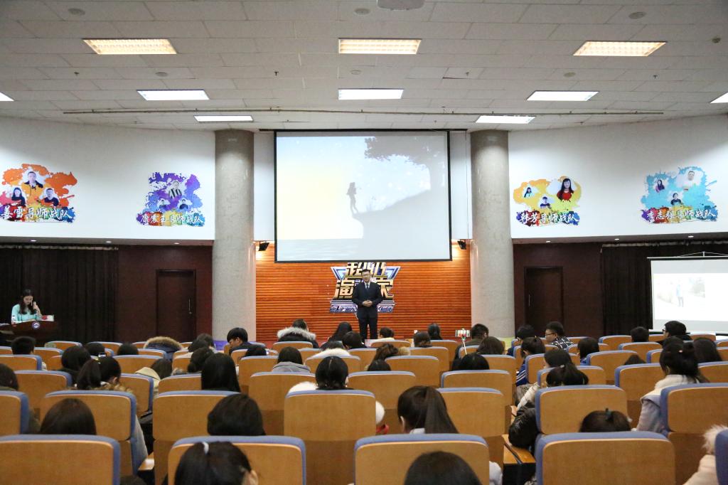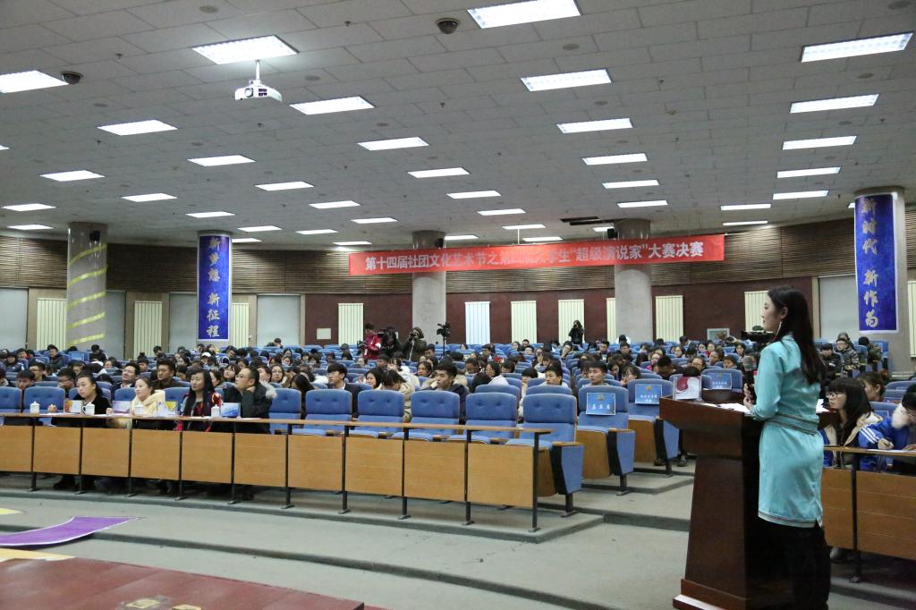 12月13日晚7:00,我校第十四届社团文化节之“青春践行十九大,青年演说新时代”第四届大学生校园“超级演说家”决赛在学术报告厅举行。党委宣传部康震玉老师、学报编辑部韩芳老师、外国语学院团总支书记姜雪老师、教育科学学院李志强老师担任了本次大赛的演说导师。团委书记呼禾、工会副主席郭雪梅、团委副书记刘晓娟、团委各科室负责人以及来自各学院的500余名学生观看了本场比赛。