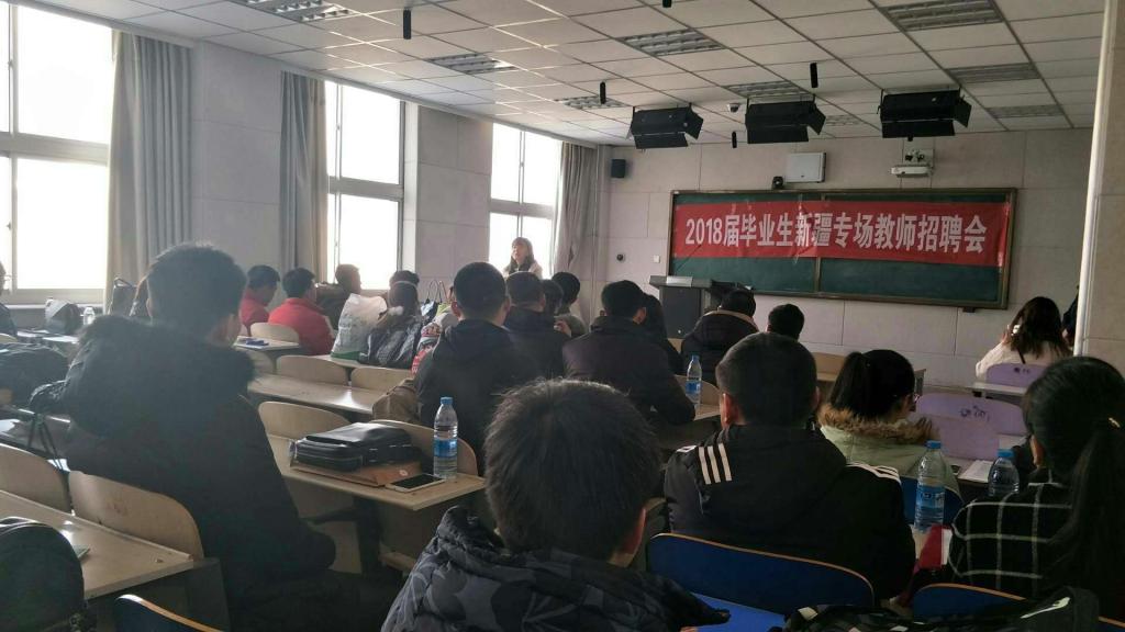 据了解,招聘单位是为了全面提升国语教学,确保到2020年少数民族学生能够基本掌握和使用国家通用语言文学,面向全国招聘教师,待遇优厚。招聘会分为两场:上午为莎车县专场,下午为尉犁县专场,两场各提供了3000个教师工作岗位,吸引了我校70余名毕业生前来应聘,现场气氛十分活跃。