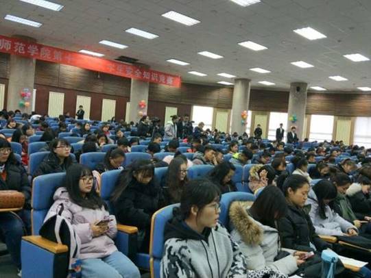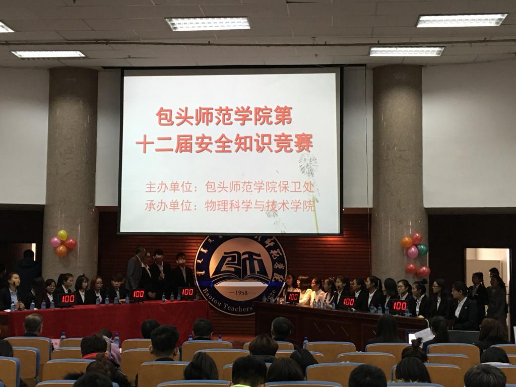 为了丰富校园文化生活,普及安全知识,切实增强学生的安全意识,提高我校学生安全应急处置能力,构建共防共治、共建共享的校园综治安全工作格局,筑牢校园安全综合防控体系,11月23日,由校综治办、保卫处主办,物理科学与技术学院承办的第十二届安全知识竞赛在博学楼学术报告厅举行。校综治办主任、保卫处处长盖永涛,团委书记呼禾,物理科学与技术学院党总支副书记、副院长吕煜瑜,保卫处副处长、警务室警长白恩慧,保卫处消防科科长杨志斌出席了本次比赛并担任仲裁评委,各学院学工办主任、辅导员、学生代表近500人参加了活动。