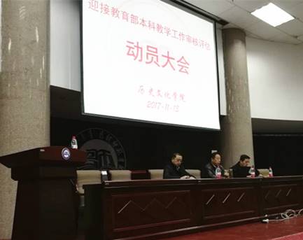 11月13日晚,历史文化学院在博学楼学术报告厅召开迎接教育部本科教学工作审核评估动员大会。学院领导班子和学生工作领导小组全体成员,2017至2014级全体学生400余人参加了动员会。会议由党总支副书记、副院长吴冰主持。