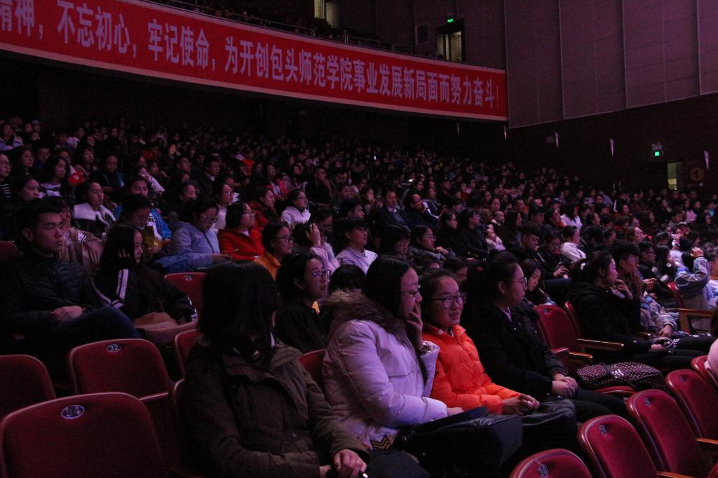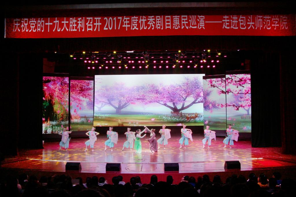 为庆祝党的十九大胜利召开,营造良好文化氛围,由内蒙古自治区党委宣传部主办,包头市委宣传部、呼和浩特市委宣传部承办的“庆祝党的十九大胜利召开2017年度优秀剧目惠民巡演”活动11月13日在包头师范学院会堂举行首场演出,包头师范学院教师、学生900余人观看了演出。