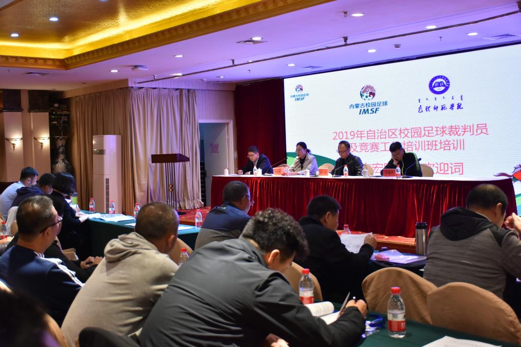 来自自治区各盟市教育局竞赛工作好裁判员组织相关负责人;2019年自治区“主席杯”校园足球四级联赛具体承办单位负责人;自治区校园足球裁委会负责同志、赛事比赛监督、裁判长;内蒙古学生体育协会相关人员;足球频道相关人员参加培训。(体育学院)
