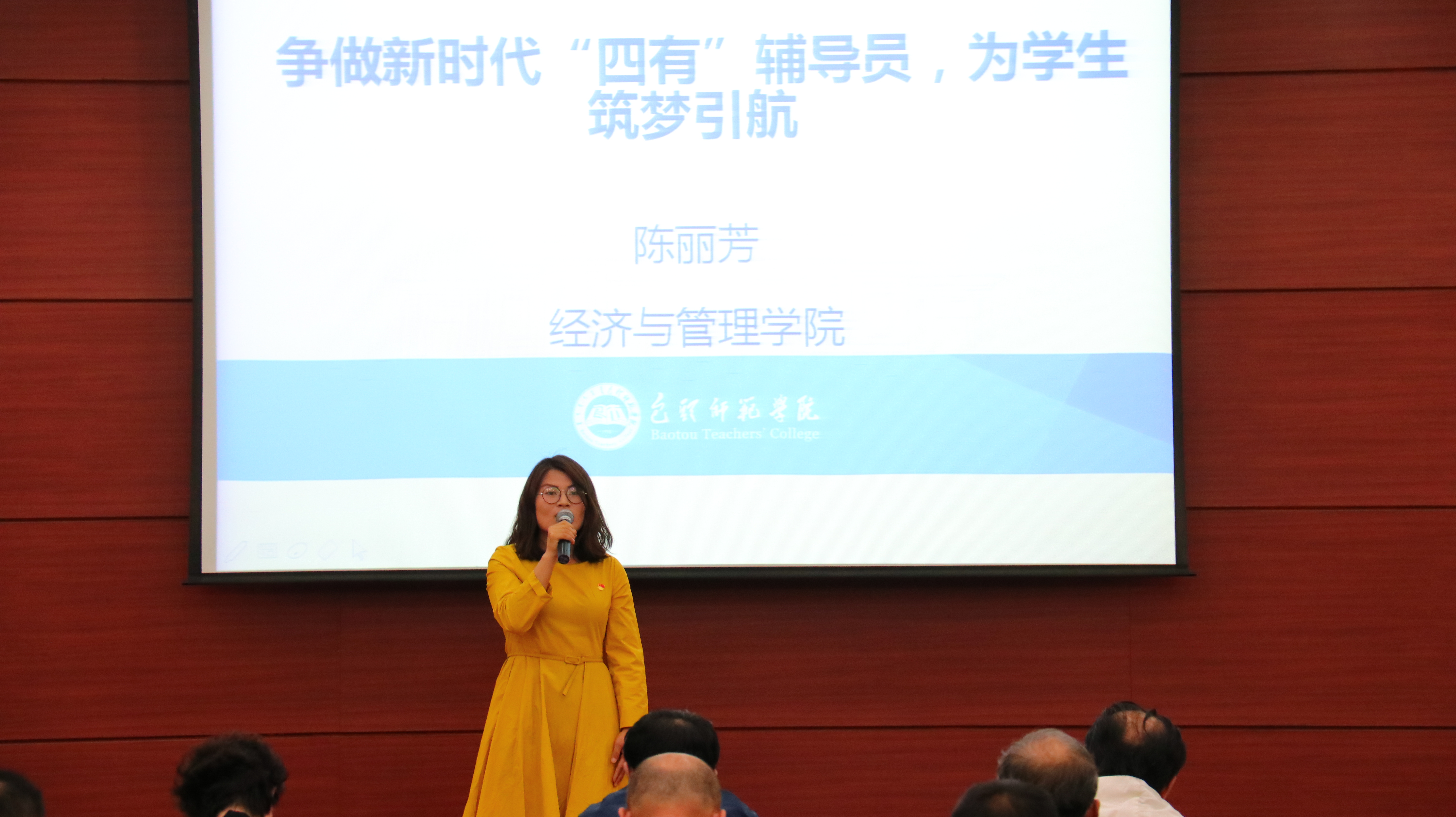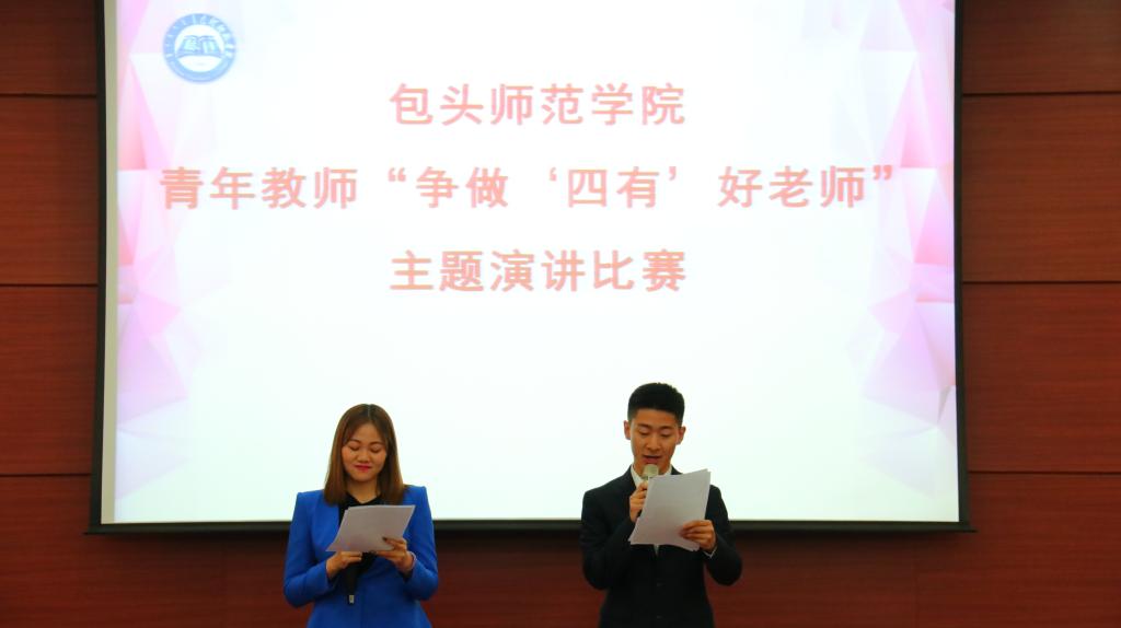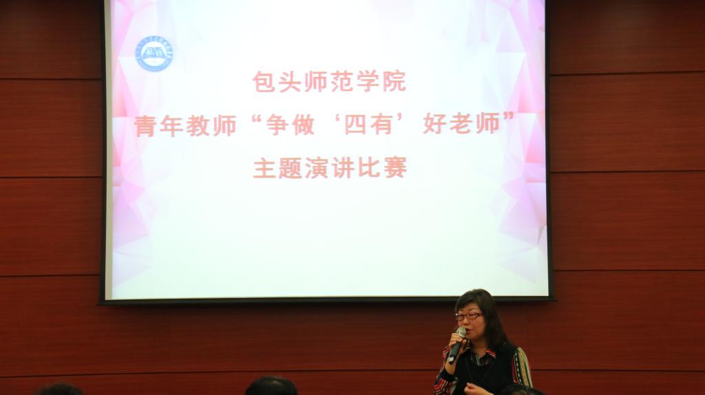 4月25日下午,由校党委宣传部、校工会主办,文学院承办的包头师范学院青年教师“争做‘四有’好老师”演讲比赛在图书馆一楼会议厅顺利举办。校党委委员、副院长王有亮莅临指导、各学院各职能部门的领导出席本次大赛,教师和部分学生代表到场为参赛教师加油。校党委委员、宣传部长史瑜、校工会副主席马春生、校学报编辑部主任张伟、文学院教师吴素娥和曲慧芳担任评委。