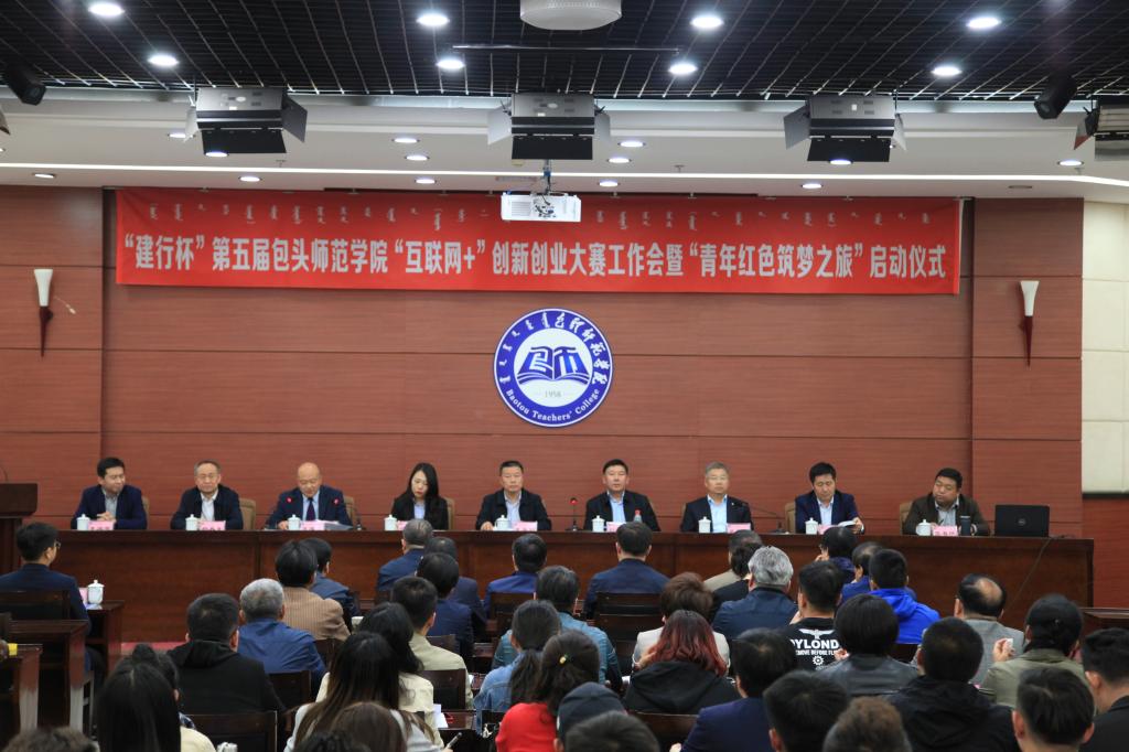 5月5日下午,我校举行第五届“互联网+”大学生创新创业大赛工作部署会暨“红色筑梦之旅”活动启动仪式。自治区教育厅高教处副处长徐劼、建设银行包头分行行长吴利彬、中国技术创业协会秘书长张春欣、新道内蒙古分公司总经理王学民,全体校领导、各部门负责人、各学院党总支书记、院长、分管创新创业工作领导、工作人员、创新创业基础课教师代表、学生代表和校友创业者代表参加了启动仪式。校党委委员、副院长王有亮主持启动仪式。
