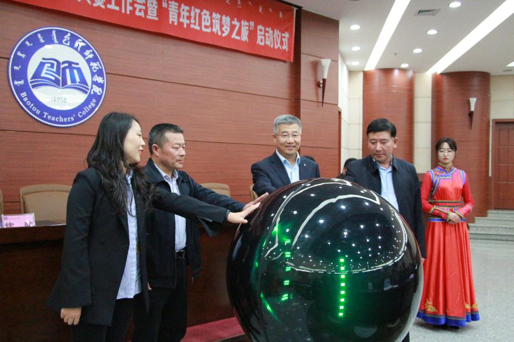 最后,在激昂热烈的音乐中,与会领导徐劼、吴利彬、王永明、刘兴旺共同按下水晶球,标志着第五届包头师范学院“互联网+”大学生创新创业大赛选拔赛暨红色筑梦之旅活动正式启动。