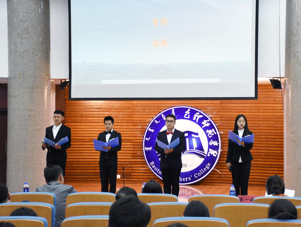 5月6日晚,由团委主办,文学院承办的“青春心向党,建功新时代”主题诗歌诵读大赛在学术报告厅顺利举办。校党委书记王永明、学生工作部长、团委书记呼禾以及文学院各位领导出席活动,部分学院教师和学生代表观看了本次大赛。校团委副书记刘晓娟、文学院副院长孙傲飚、播音与主持艺术系主任单新宇、文学院办公室主任石韶华、播音与主持艺术专业教师黄一楠担任评委。