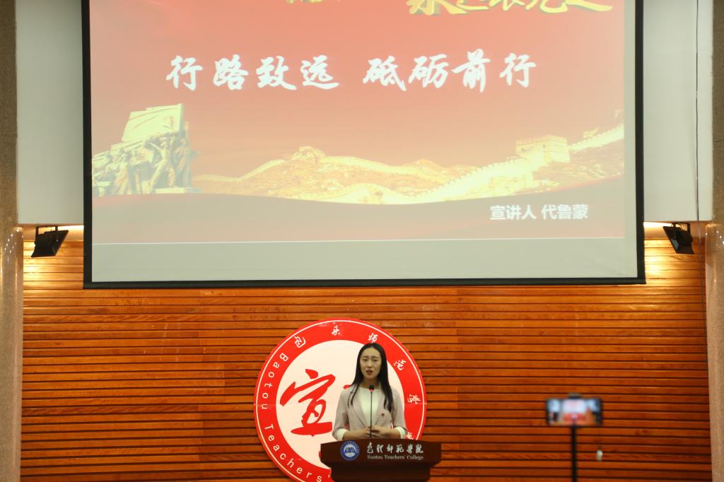 5月8日晚,我校“青春心向党·建功新时代”第七届大学生形势政策教育宣讲大赛决赛在学术报告厅举行。宣传部理论宣传科长康震玉、马克思主义学院教师李中华、信息科学与技术学院辅导员姜嘉丽、经济与管理学院辅导员谭彬担任大赛的导师兼评委。团委副书记刘晓娟及团委各科室负责人,大学生形势政策教育宣讲团成员及各学院学生代表观看了比赛。