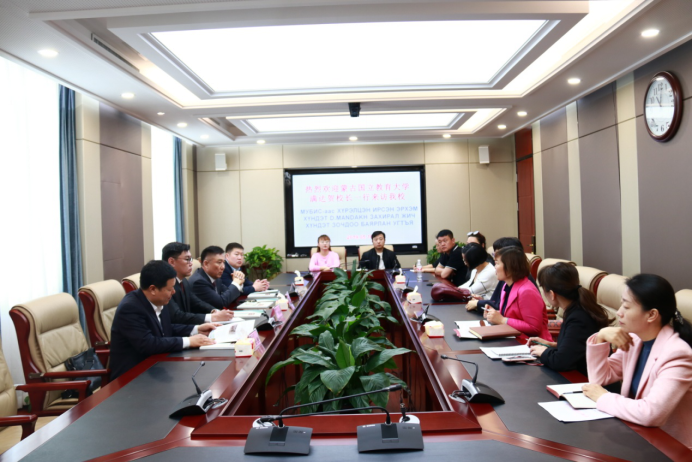 会谈结束后,蒙古国立教育大学访问团同我校准备赴蒙古攻读博士学位的教师进行了座谈。(外事办)