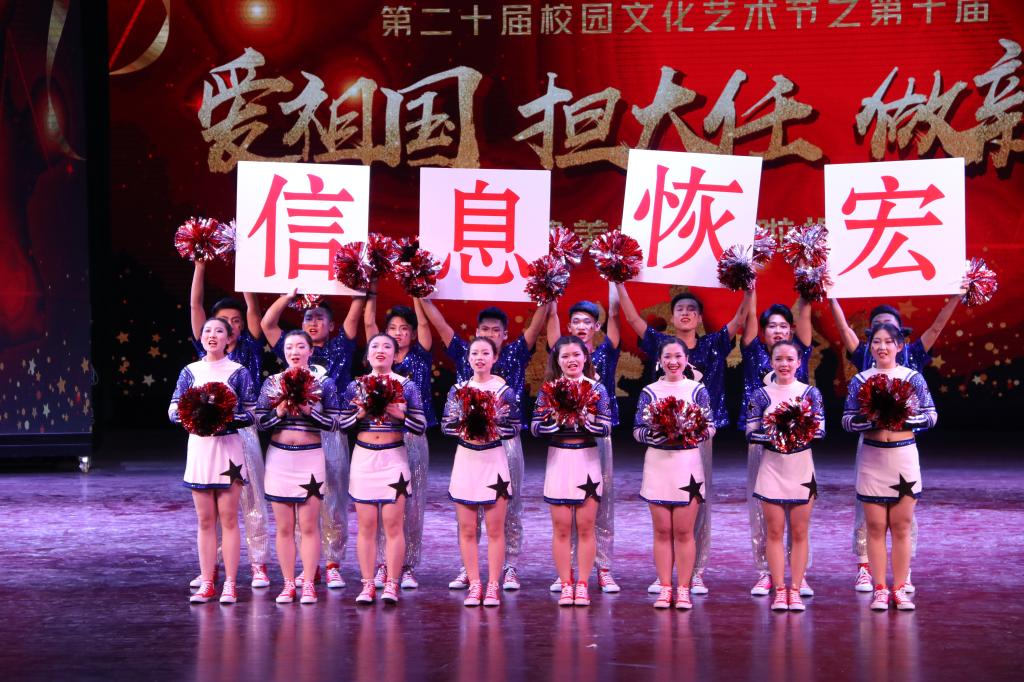 大赛第一部分是体育学院及音乐学院选派的3支专业组代表队依次登场,她们从舞蹈编排、音乐选择,整体构思及动作设计都做了非常充分的准备,将健美操、啦啦操的专业水平诠释的淋漓尽致;我校中心社团大学生民族舞蹈团带来的《风筝误》以古色素雅、轻柔飘逸、超凡脱俗的中华传统神韵给激烈的比赛增添了几分清新与雅致;第二部分由各学院选派的13支代非专业组的竞技比拼,她们用坚定的自信、灿烂的笑容、矫健的舞姿、默契的配合为我们展现出师院学子昂扬向上的精神面貌与活力四射的蓬勃朝气。随着校园“十佳”歌手带来的歌曲《春暖花开》、《奔跑》、《追梦赤子心》以及参赛队员们合唱《我和我的祖国》,大赛完美落幕。