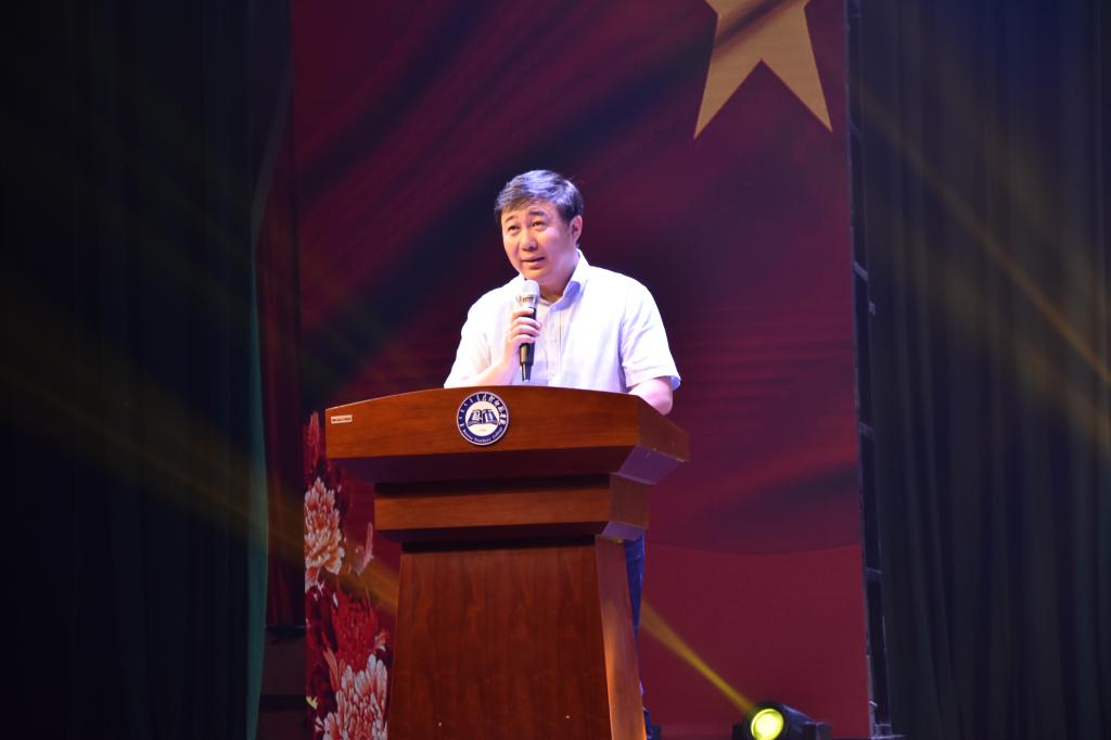 在开场舞《MU》后,学生工作部(武装部)部长呼禾老师为晚会致辞。呼禾老师对2019届老队员为国旗班的付出给予了充分肯定,他激励老队员要继承国旗班的优良传统,今后在工作岗位中发扬艰苦奋斗、勇往直前的精神,做爱党忠诚、爱国奉献的有为青年。