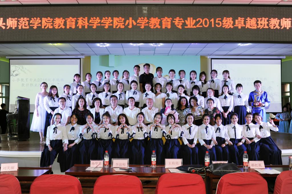 小学教育2015级卓越班是自2014年我院获批“构建民族地区三位一体卓越小学教师培养机制的实践与探索”项目以来的第二个卓越班,也是第一次以自然班形式生成的卓越班。为了凸显实践取向的人才培养目标,小学教育专业本着以考促练的原则,尝试探索与课程结合、与见习和实习结合、与社团活动结合、与导师制结合的教师职业技能训练方式。经过三年的学习和训练,2015级卓越班的同学们在各方面都取得了显著进步,通过展示,充分体现了学生的训练成果和卓越潜质,得到参加观摩的领导、教师和各小学教育实践基地专家的肯定和好评。
