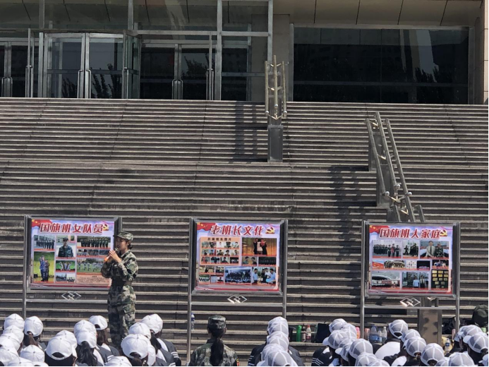为深入贯彻落实习近平总书记关于新时代爱国主义的重要论述精神,进一步培育大学生爱国主义情怀,营造激发爱国热情、发扬爱国主义传统、弘扬爱国主义精神的良好氛围,9月2日,我校军训团组织2019级全体新生在博学楼广场开展了爱国主义教育活动。