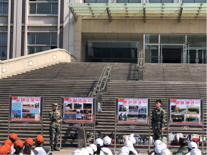 本次活动以国旗班发展历史为背景,展出了国旗班训练、学习、工作、生活等历史照片和老物件。国旗班队员云慧、孙嘉宁、廖新宇、张浩文作为解说员,分别从爱国主义、奉献青春、模范带头、团队协作、艰苦奋斗、女队员风采、老班长文化和大家庭情怀八个方面,为2019级新生上了一堂生动、感人的思想教育课。
