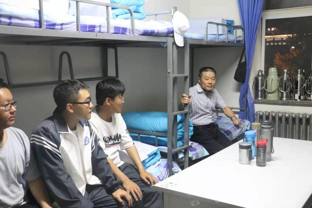 领导和老师们来到新生宿舍,亲切地与同学们拉起了家常,询问同学们:“军训累不累?”“宿舍住起来感觉怎么样?”“想不想家?”“刚进入大学适不适应?”“未来是否有考研的计划?”等问题。同学们一一作答,并对学校饮食、环境、住宿及迎新工作方面提出了宝贵的建议。在走访座谈中,王书记对同学们提出了殷切希望:一是要牢固树立安全意识,杜绝不安全的生活习惯,顺利平安地过好大学生活;二是要树立更高的人生目标,做好人生规划,在大学期间不断扩充自己的知识结构,全面发展,努力提高自己的综合素质;三是希望同学们懂得感恩,孝敬父母,常和家里保持联系;要平和包容,团结互助,正确处理好同学关系。最后王书记也预祝同学们在大学期间健康、快乐成长,学有所获,同时也期待着同学们的精彩表现。