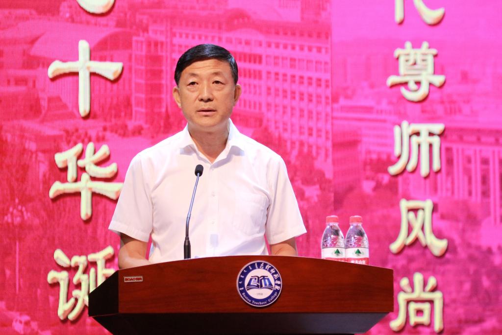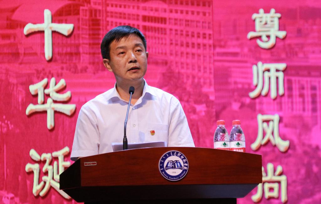 校党委书记王永明讲话,代表学校党政班子为全体教职员工,长期以来为学校发展贡献智慧和力量的离退休老同志以及关心和帮助学校事业发展的社会各界人士,送上第35个教师节的亲切问候与祝福。他深情回顾了一年来,我校教职员工在学校的建设与发展中呕心沥血、勤耕不辍的一个个精彩画面,并从“扎实做好师范专业认证”“继续加强师资队伍建设”“加快基础建设步伐”和“加强党的建设”四个方面谈了学校未来的发展任务,鼓励全校教职员工要“始终牢记育人使命”,“大力弘扬高尚师德”,进一步“发挥表率作用”,把更多的热情投入到教书育人工作中去。