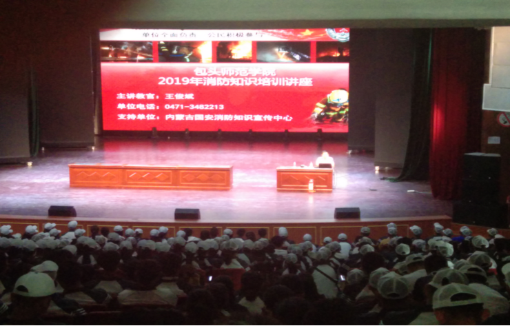 为进一步做好校园消防安全宣传教育工作,增强大学生的消防安全意识,推动我校消防安全工作深入开展,保卫处在2019级新生军训期间,分三个批次在会堂举办了消防安全知识宣传教育讲座,特邀自治区国安消防知识宣传中心王俊斌教官担任主讲,全校3400余名2019级新生、保卫处负责人、消防科全体职工、部分学生综治联盟队员参加了培训。