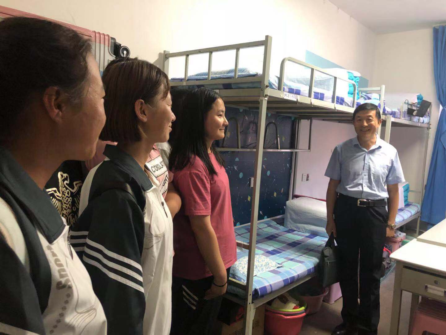 施院长先后来到教育科学学院所在的女生公寓6号楼和男生公寓5号楼,随机走进部分新生宿舍,附近宿舍的新生们也都闻讯围拢过来,施院长亲切的同新生交谈,询问大家入学报到是否顺利、是否适应学校环境以及军训、饮食等方面的情况。在走访中,施院长提醒大家要提高自我保护意识和警觉意识,还讲述了大学生活应该怎样度过,特别嘱咐和勉励同学们要确立大学阶段的奋斗目标,规划好大学四年的学习生涯,要互相帮助、互相激励,营造宿舍良好学习氛围和风气,共同进步成长,希望他们学会做人、学会学习、学会生活、学会自立,尽快适应大学生活。