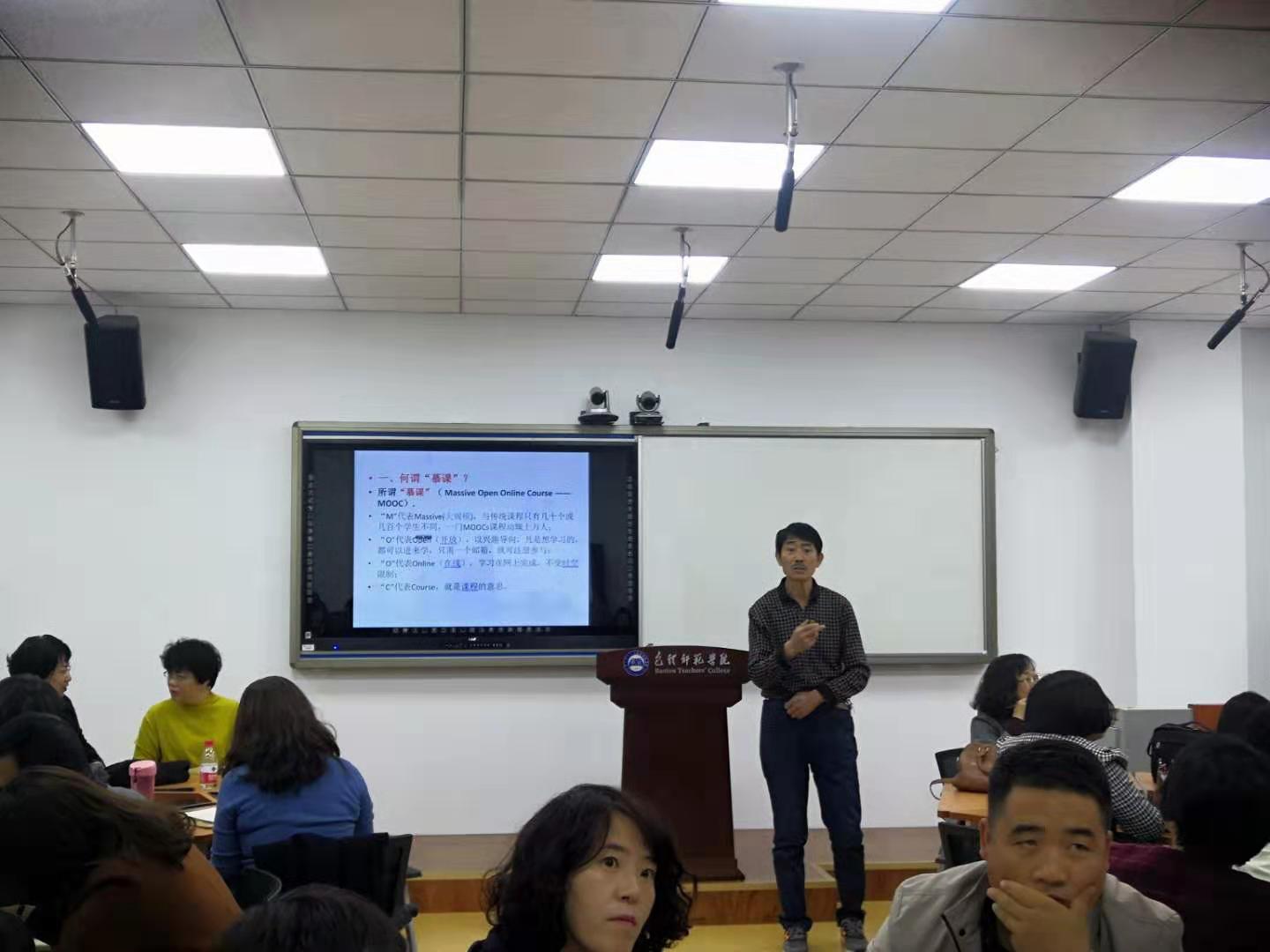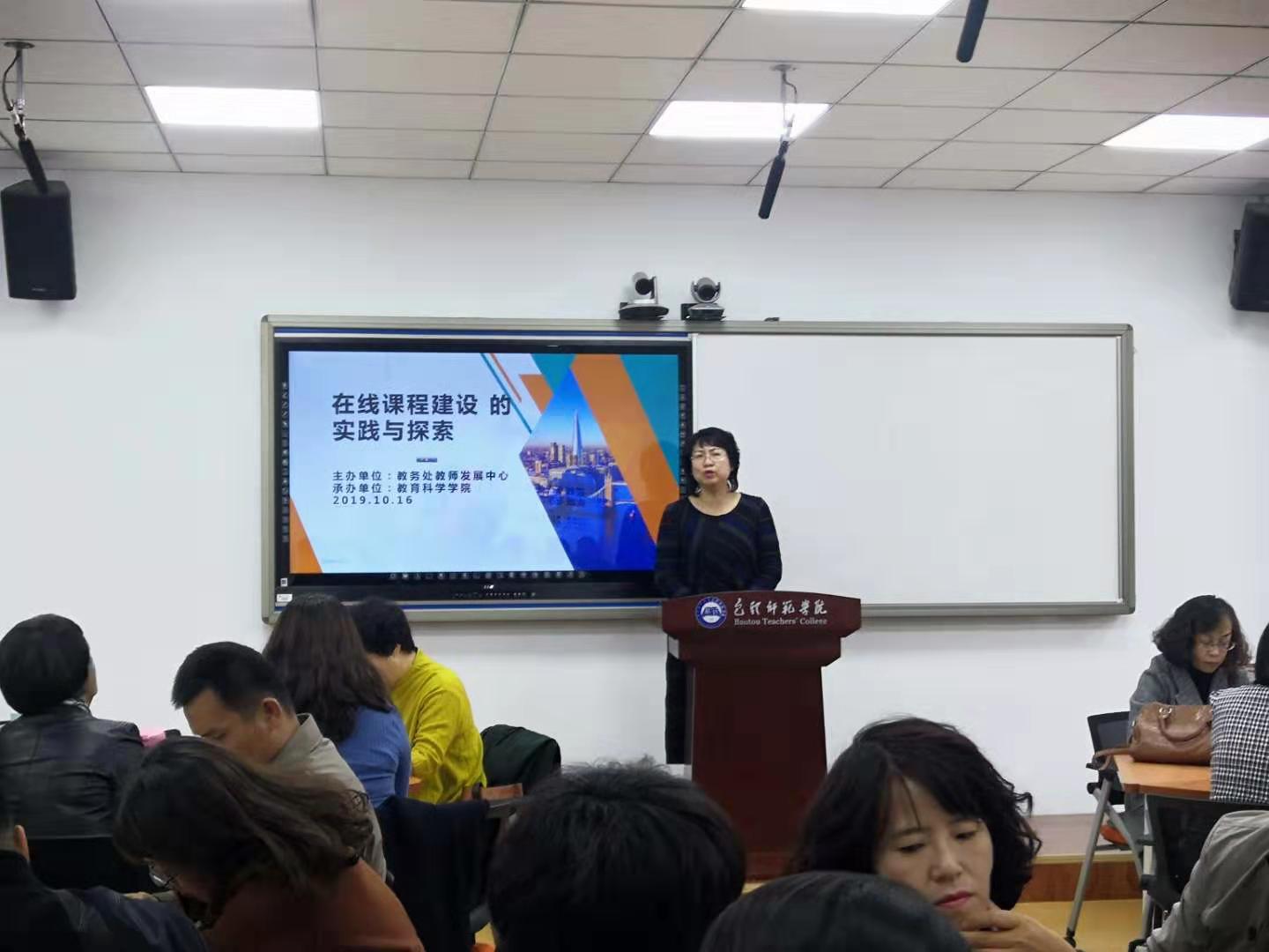 10月16日,由教务处主办、教育科学学院承办的主题为“在线课堂建设的实践与探索”教学沙龙活动在博东106举行。我校教务处教师发展中心人员、各类课程负责人与成员代表以及教育科学学院部分教师参加了此次活动。活动由教育科学学院副院长李芳主持。教育科学学院刘俊英、于海臣担任本次活动的主讲人。