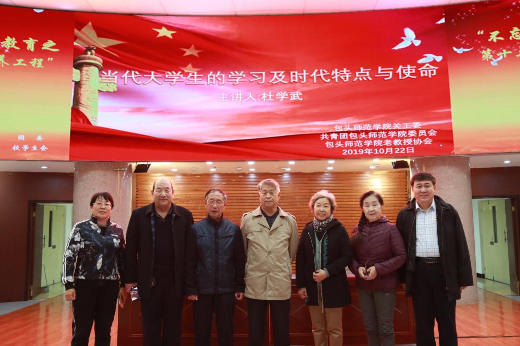 根据我校“不忘初心,牢记使命”主题教育工作总体安排,第十三期“青年马克思主义者培养工程”全校学生干部培训班于10月22日晚,邀请我校原党委书记杜学武教授讲授了一场别开生面的精彩讲座。我校退休老干部、老教授关力、吴广义、薛月姊等,校党委组织部副部长薛红旗,团委各科室负责人以及校学生会,二级学院学生分会、新生班级团支部书记、班长,各级社团的学生干部500余人参加了报告会。报告会由学生工作部部长、团委书记呼禾主持。