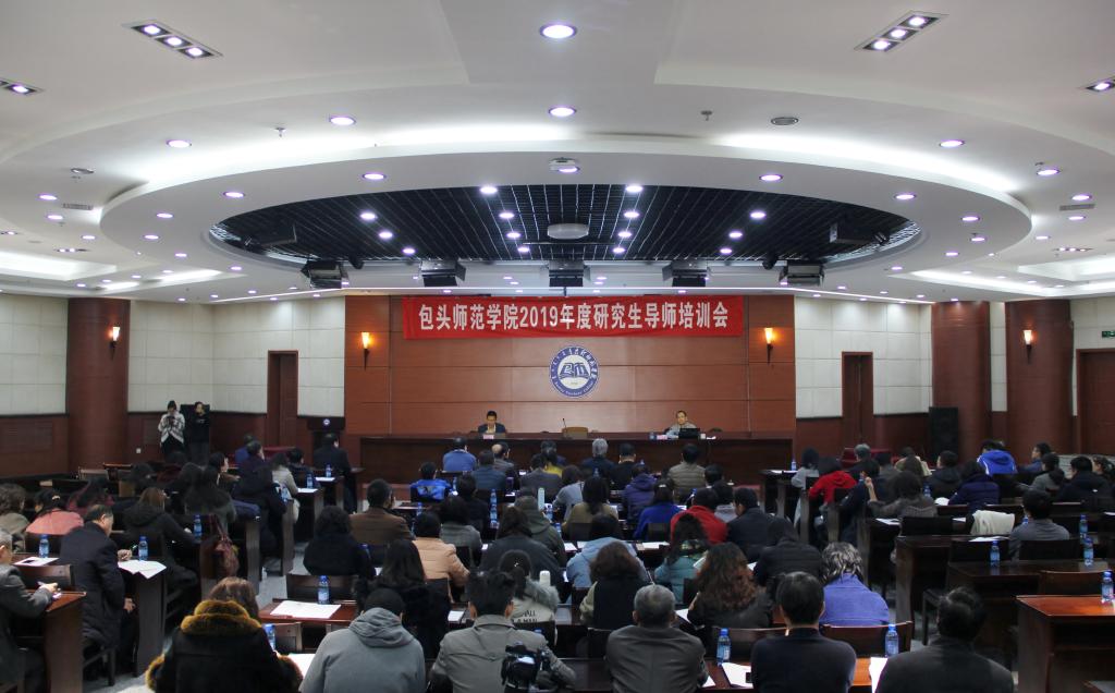 为全面贯彻党的教育方针,落实立德树人根本任务,充分发挥研究生导师在研究生培养中的主导作用,建设一支高水平的研究生指导教师队伍,提高我校的研究生培养质量和水平,结合“不忘初心、牢记使命”主题教育,11月23日上午,研究生处在图书馆会议厅举办了包头师范学院2019年度研究生导师培训会。研究生导师、培养学院领导、研究生秘书100余人参加了培训。此次培训会邀请到内蒙古师范大学党委委员、研究生院院长、教育学博士、博士研究生导师张玉柱教授主讲。校党委委员、科技(研究生)处处长董贵成出席培训会,副处长许全亮主持培训会。
