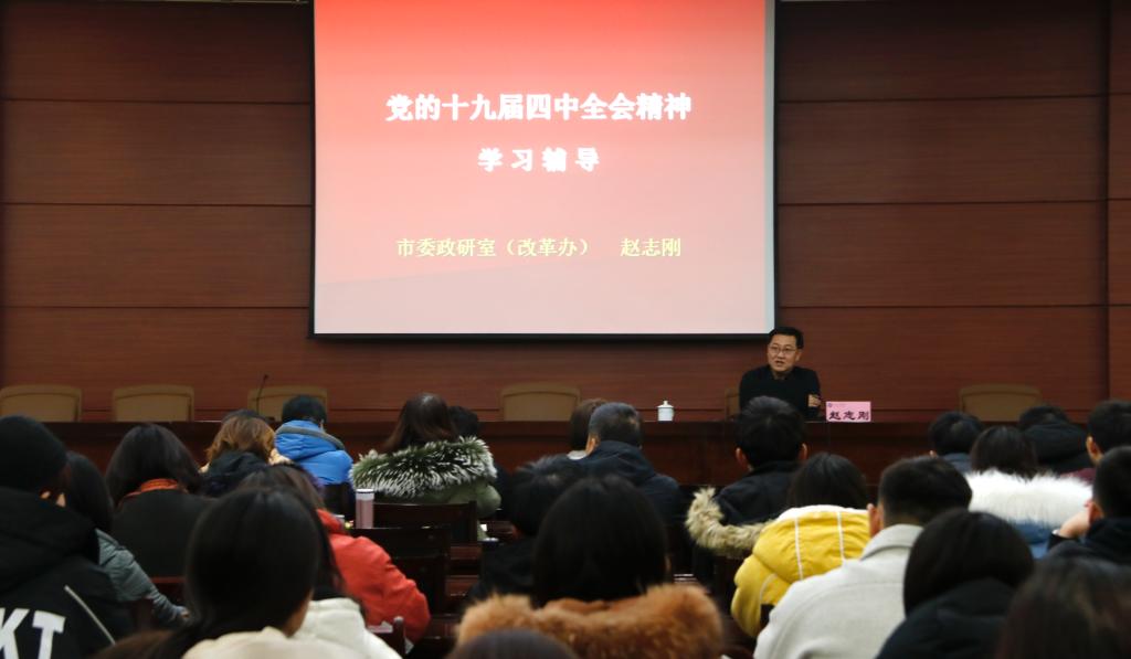 12月11日,我校在图书馆会议厅举办了党的十九届四中全会精神宣讲报告会。机关全体干部职工、马克思主义学院、政法学院部分教师、部分学生理论宣讲骨干聆听了报告会。