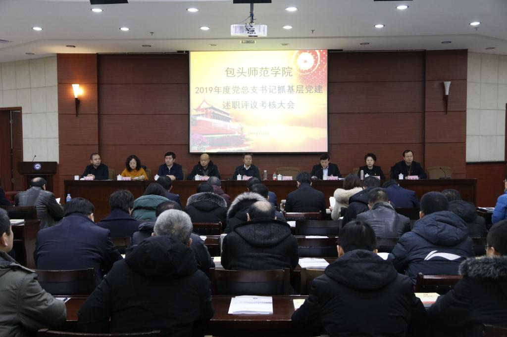 会上,10位党总支书记就2019年抓基层党建工作情况进行了现场述职,其余10个党总支进行了书面述职。学校党委书记王永明对各党总支书记抓党建工作进行了点评;全体参会人员对现场述职和书面述职的党总支书记抓基层党建工作进行了民主测评。