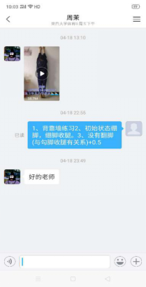 在教学内容设计时,老师们还制作了许多体育教学资源或将过去录制的技术动作视频、图片等教学资料拿出来与学生分享,通过教学中的师生互动,提高了体育在线课堂教学效果。