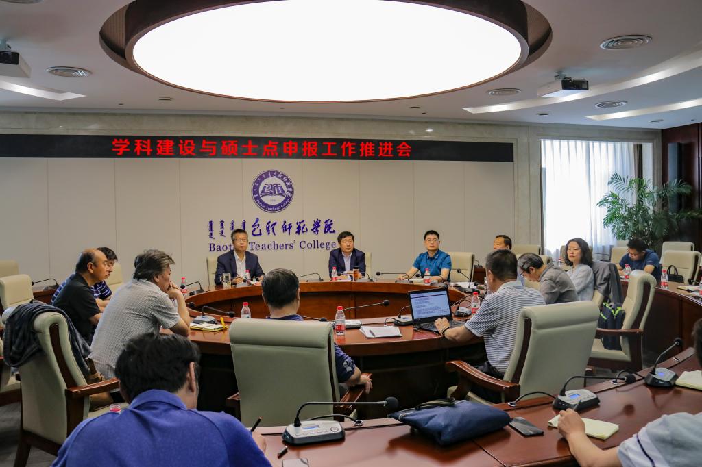 金桩院长在听取汇报后,就我校学科建设工作提出指导性意见:一要充分认识学科建设的重要意义;二要提高人才培养质量,夯实学科建设的基础;三要提升科研队伍能力,培育高质量科研项目、成果,加强学术交流与合作,改进科研评价体系,调动教师和科研人员开展科学研究的积极性;四要加强社会服务工作,与包头市各行业合作,进一步提升学校人才培养、科学研究服务地方经济社会发展的能力;五要不断加强师资队伍建设,通过引进和培养,打造学科领军人物,优化师资队伍结构;六要凝练学科特色,精准学科定位,优化学科布局,围绕自身发展的现实需求,凝炼出与地方行业相对应的学科研究路径;七要加大学科建设力度,在政策和经费上对学科建设给予保障,提升学科硬件水平,建设高层次科研平台;八要做好硕士点申报工作,各学院要积极培育优势学科,对照条件,加快建设,努力实现拟申报硕士点学科基本条件全面达标。